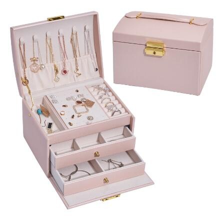15分鐘前帶鎖三層抽屜首飾盒 。大容量,巨能裝,滿足女孩子收集癖,各種首飾裝裡面,防灰防塵防氧化,不易丟,超好用 - NT$1299兩入組