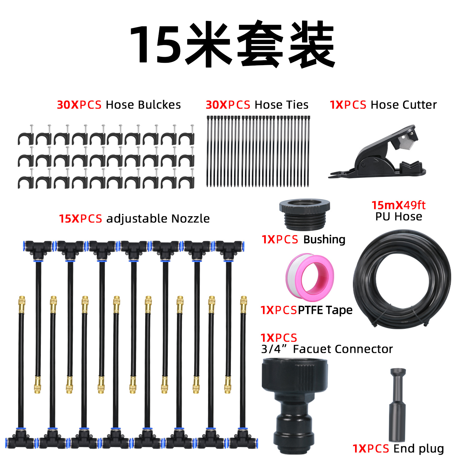 15分鐘前萬向噴頭一體自動澆花器 - 霧化套裝~15米~帶釘【一入組】NT1388