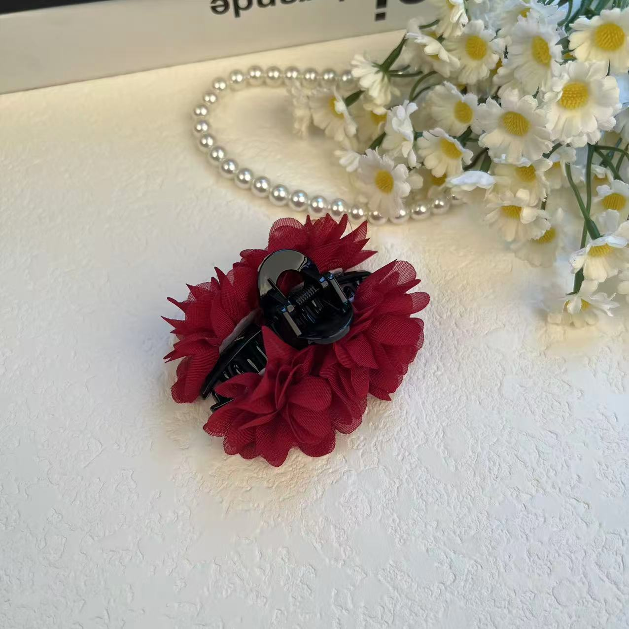 半小時前玫瑰花抓夾盤發頭花劉海側邊夾7Cm法式慵懶感半紮髮卡 - 【盤發頭花慵懶感半紮髮卡 一對裝】3入組-NT$1180