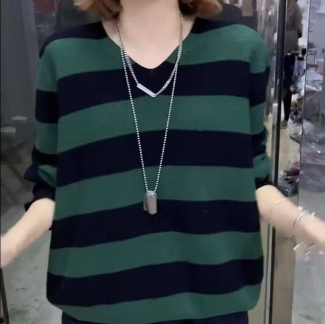 4分鐘前2024新款秋冬季寬鬆條紋針織毛衣女士打底衫 - 【超值套餐】任選3件 僅需NT$1298