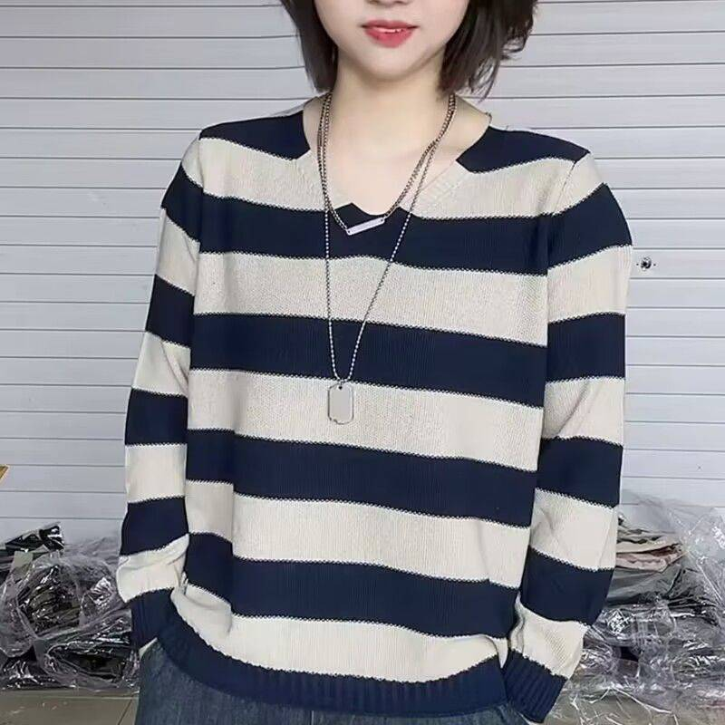 11分鐘前2024新款秋冬季寬鬆條紋針織毛衣女士打底衫 - 【超值套餐】任選3件 僅需NT$1298