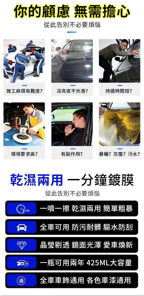 7分鐘前火爆熱銷中!台灣本土出貨,日本進口速效汽車鍍膜劑,去污+鍍膜 - 【超值優惠價9入組】贈送汽車鍍膜毛巾9條 NT$1698