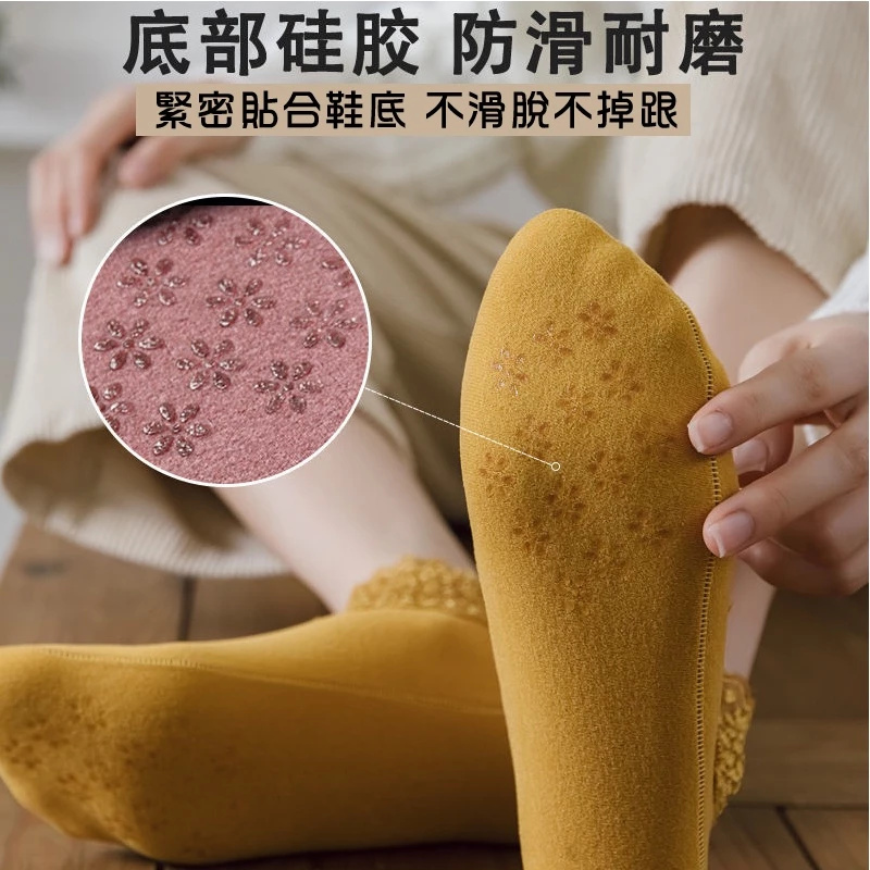 4分鐘前優雅蕾絲花邊設計,絨面厚棉,柔軟有韌性,穿上超舒適 矽膠防滑設計,舒適不咯腳 拉伸設計,適合各種腳碼大小 - NT$770五雙(顏色隨機),每雙均價NT$154