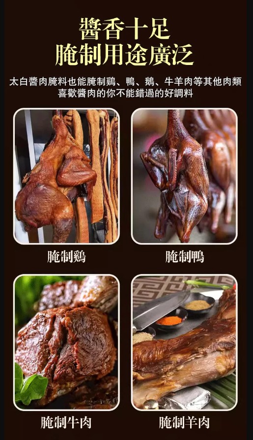 15分鐘前【一袋做6斤】太白醬肉醃料廚師兄川味風乾臘肉料300g/袋醬排骨猪肝 - 新品嘗鮮【太白醬肉醃料 300g/袋】3入組NT$980