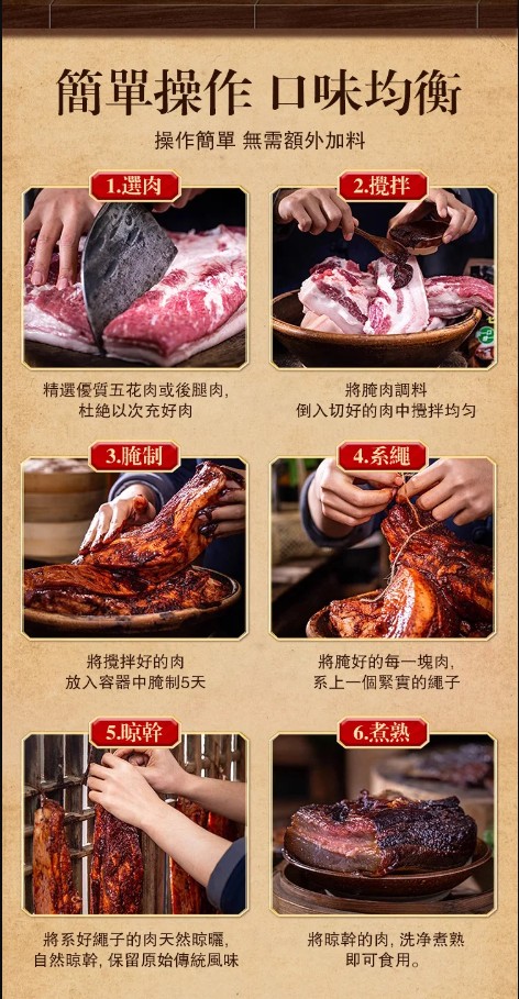 2分鐘前【一袋做6斤】太白醬肉醃料廚師兄川味風乾臘肉料300g/袋醬排骨猪肝 - 新品嘗鮮【太白醬肉醃料 300g/袋】3入組NT$980